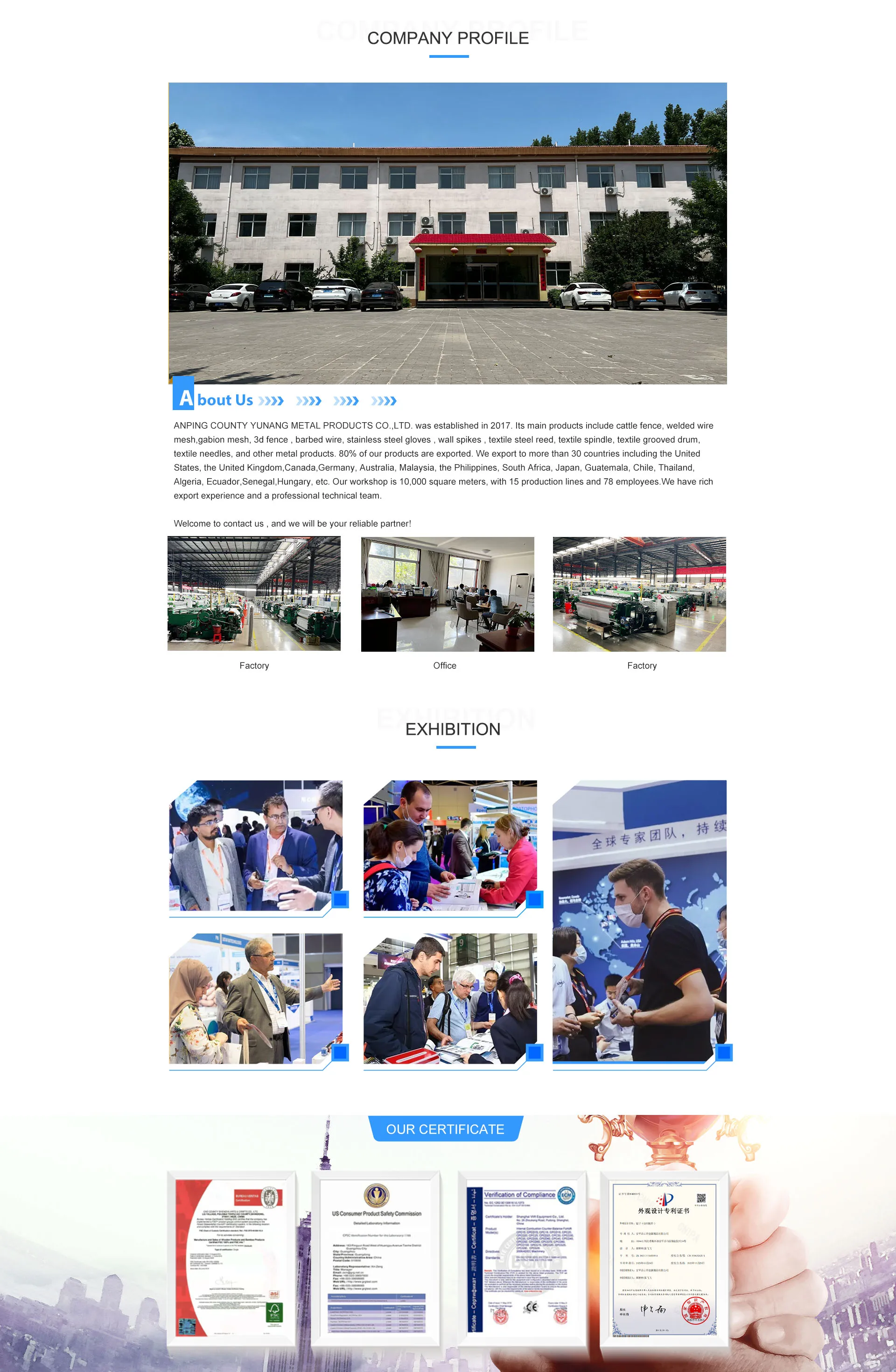 Principaux produits : Clôture, accessoires de textile, maille de Gabion, maille de gril, fil barbelé